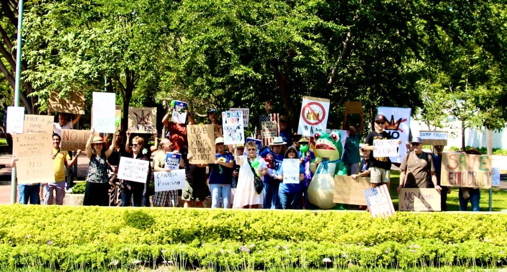 “¡Nuestra manifestación de hoy fue un ÉXITO! 🎉 Asistieron entre 40 y 50 personas increíbles —incluyendo caras conocidas y algunas completamente nuevas. La energía fue intensa, los carteles audaces y el mensaje claro: No Tyrants Allowed. … ¡Incluso tuvimos un invitado sorpresa —una rana! 🐸 (Aparentemente ellas también están contra la tiranía 😆).”