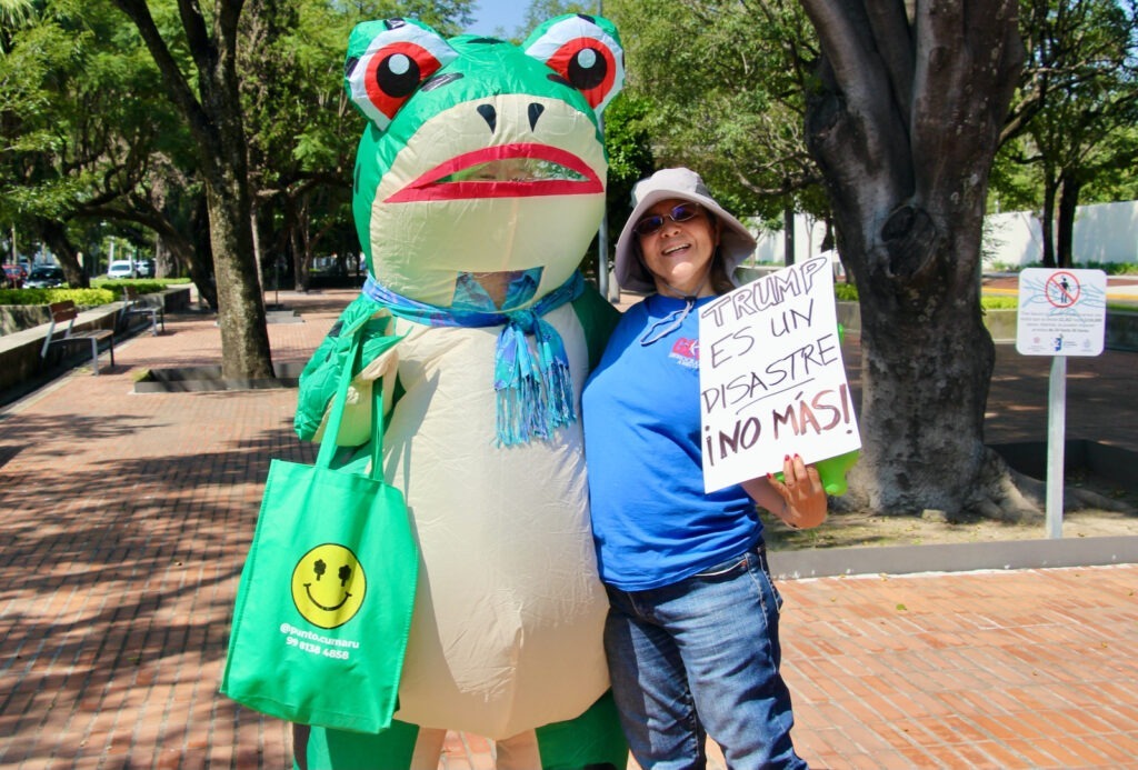 La rana se convirtió rápidamente en la mascota no oficial de la manifestación, ganándose una mención entusiasta en la publicación de Facebook de Democrats Abroad Guadalajara y encantando a quienes pasaban.