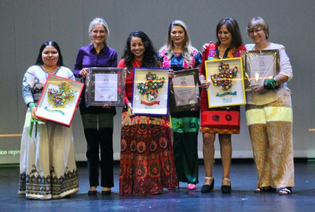 De izquierda a derecha: la galardonada Geraldine Tuutú Rivera, la presidenta Paula Ramírez Höhne, la galardonada María Elena García Trujillo, la consejera Zoad Jeanine García González, la galardonada de 2024 y presentadora del premio María Guadalupe Ramos Ponce, y la galardonada Silvia María Loggia. (Tracy L. Barnett)