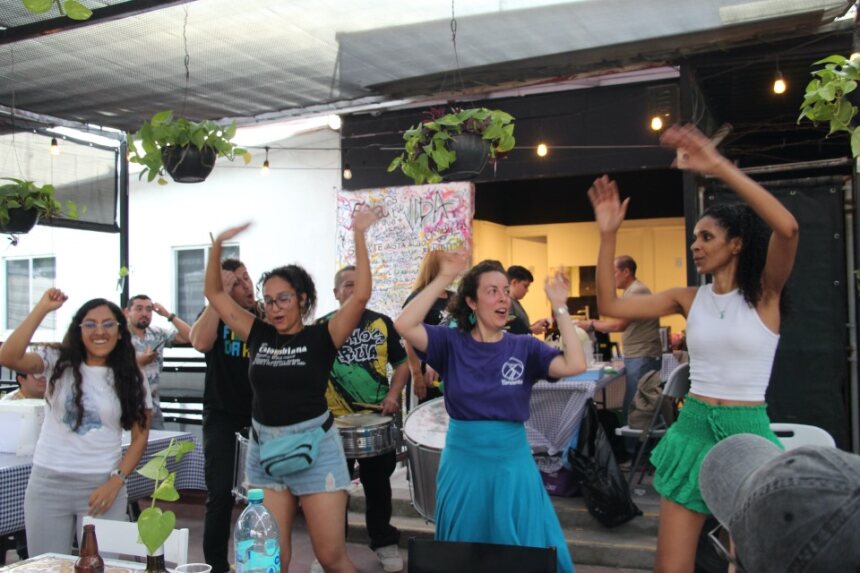 El espíritu de esa frase llenó el aire aquella tarde en Tantuyo: Vielma y Jiménez se unieron a la fila de mujeres que bailaban al ritmo de la batucada brasileña, entre risas y saludos mientras los niños jugaban entre los puestos. A medida que el sol bajaba sobre la calle Progreso, el ritmo se aceleró. Mariángel, María Patricia y decenas de mujeres más entrelazaron los brazos y bailaron, sus carcajadas elevándose por encima de los tambores. Los niños corrían entre ellas, con globos y empanadas a medio comer. Cuando sonó el último golpe del tambor, las mujeres se giraron juntas para limpiar las mesas, apilar sillas y barrer el piso cubierto de confeti — aún sonriendo, aún conversando.