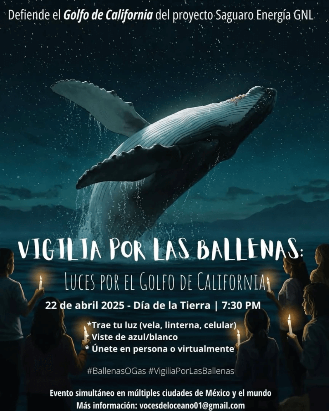 El 22 de abril — Día de la Tierra — comunidades de todo México y más allá se levantarán en defensa de uno de los ecosistemas marinos más ricos del planeta: el Golfo de California. Artistas, científicos, pescadores locales y activistas se reunirán en pueblos y ciudades costeras para decir no al proyecto Saguaro LNG, … Sigue leyendo Pintando por las ballenas: Beatriz Padilla y su huelga de 21 días